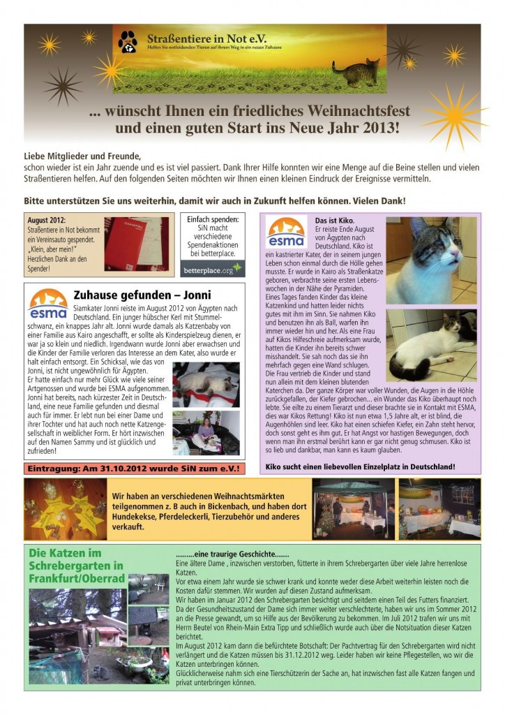 Von Deutschland aus sind Spenden mit dem Stichwort „ESMA“ auf das Konto des Deutschen Partnervereins Straßentiere in Not e.V. (Konto: 84727) bei der Raiffeisenbank Nördliche Bergstraße eG ( BLZ: 508 615 01) möglich. Das Geld kommt zu 100% den Tieren von ESMA zu Gute.