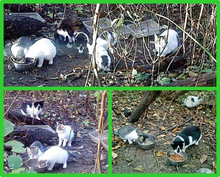 An einer Futterstelle betreuen wir dort 8 verwilderte Katzen, die von uns täglich versorgt werden. Die Katzen werden natürlich auch noch vor dem Winter eingefangen und kastriert, damit die Gruppe im nächsten Jahr nicht noch größer wird.