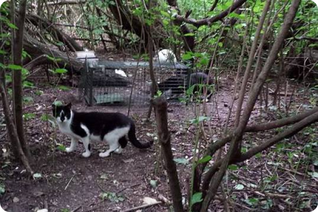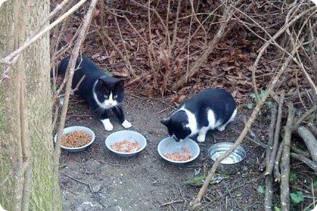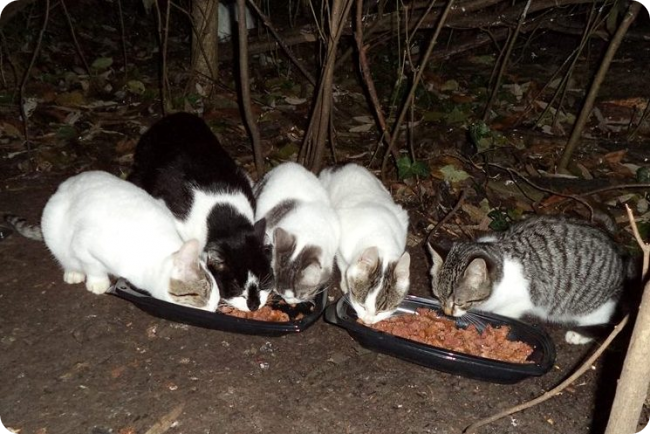 Oft erhält der Verein Hilferufe von Menschen, die auf herrenlose Katzen aufmerksam geworden sind. Sie leben im Verborgenen und werden von vielen Menschen gar nicht wahrgenommen bis sie zum Problem werden. Der Verein hat es sich zur Aufgabe gemacht diese Katzen einzufangen, zu kastrieren und wenn möglich wieder an ihren Ursprungsort zurück zu bringen. Dort werden Futterstellen eingerichtet, die von Mitgliedern des Vereins oder auch von Privatpersonen betreut werden. So ist es auch bei einer Futterstelle außerhalb von Biebesheim geschehen. Seit November 2013 betreut der Verein dort eine Stelle für freilebende Katzen. Sie wurden kastriert und werden regelmäßig mit Futter versorgt. Durch Spenden war es möglich zwei Schutzhütten aufzustellen um den Katzen im Winter einen warmen und trockenen Zufluchtsort zu bieten. Bei Bedarf organisiert der Verein auch die tierärztliche Betreuung, sowie eine regelmäßige Entwurmung. Außer den einmaligen Kosten der Kastration und Kennzeichnung fallen folgende Kosten pro Katze an: